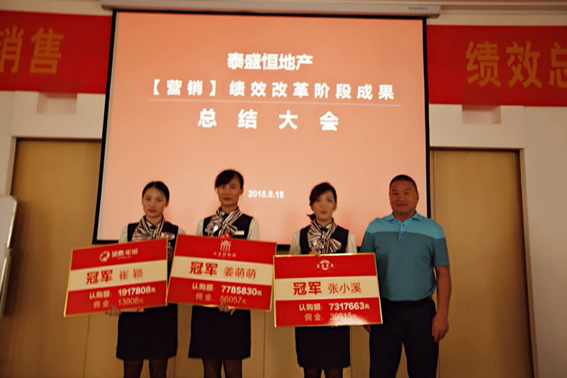 隨后,大會(huì )對各項目的銷(xiāo)售的先進(jìn)個(gè)人進(jìn)行表彰,宣讀銷(xiāo)售業(yè)績(jì),高業(yè)績(jì)高績(jì)效的改革模式,不僅激勵銷(xiāo)售人員勇創(chuàng )佳績(jì),更是給予現場(chǎng)的與會(huì )人員極大的震撼,尤其是班總和孫總分別對銷(xiāo)亞和銷(xiāo)冠進(jìn)行的頒獎儀式使得現場(chǎng)的氛圍達到了高潮!