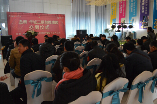 清晨一場(chǎng)瑞雪,預示來(lái)年豐收,更預示今天是個(gè)好日子。泰盛恒地產(chǎn)再創(chuàng )新速度,打破以往提前100天交房紀錄,旗下金泰華城項目三期加推瑜園本次提前120天舉行盛大交房?jì)x式,現場(chǎng)彩燈高掛,喜氣洋洋,業(yè)主們歡聲笑語(yǔ),喜上眉梢。