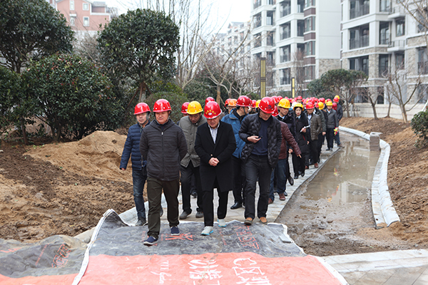 最后,公司人員來(lái)到金泰華府南府項目,項目經(jīng)理姬常寶首先整體介紹了項目工程概況和工程進(jìn)度,質(zhì)量上嚴格把關(guān),進(jìn)度上積極推進(jìn),并著(zhù)重觀(guān)摩了項目會(huì )所。孫董在施工現場(chǎng)作重要講話(huà),明確了公司對項目品質(zhì)和項目管理的重視程度,希望用最優(yōu)的產(chǎn)品打造公司的品牌形象。