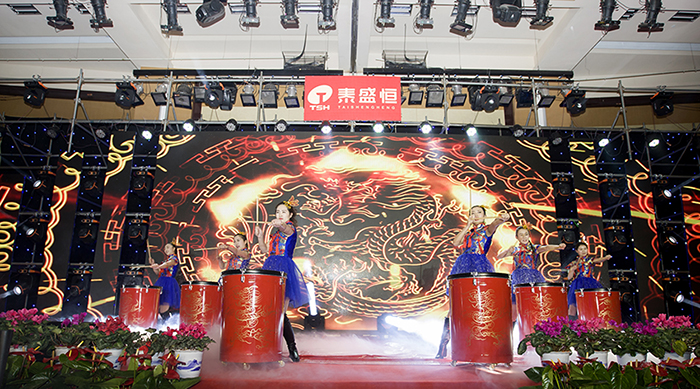 晚會(huì )伊始,公司領(lǐng)導與員工們紛紛在簽名墻和許愿樹(shù)上簽字并寫(xiě)下了新年的期待和對公司的良好祝愿。下午430,泰盛恒全體職工共同觀(guān)看了拜年視頻,現場(chǎng)不時(shí)發(fā)出一陣陣掌聲。隨著(zhù)開(kāi)場(chǎng)舞《騰飛.泰盛恒》的唯美上演,晚會(huì )正式拉開(kāi)了帷幕。公司董事長(cháng)馬亞鵬上臺致答謝詞,感謝員工及其家屬一年來(lái)的大力支持,并宣布晚會(huì )正式開(kāi)始。