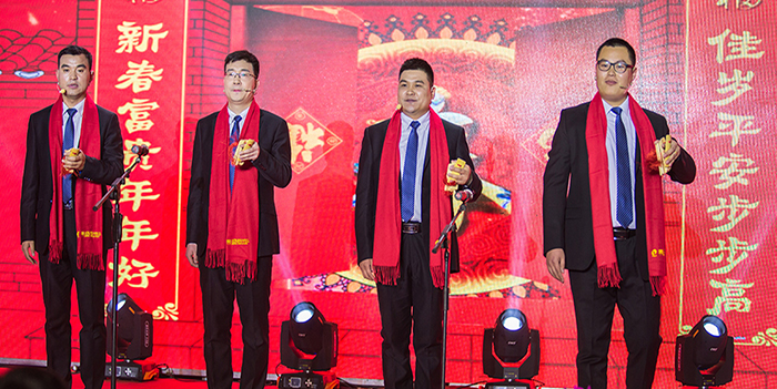 晚會(huì )期間,公司領(lǐng)導馬董、孫董代表兩大股東公司及董事會(huì )進(jìn)行了現場(chǎng)敬酒。他們走到每一個(gè)餐桌前面,親切地與員工進(jìn)行交流,表達對員工的感謝和祝福,感謝員工家屬們對公司的支持。
