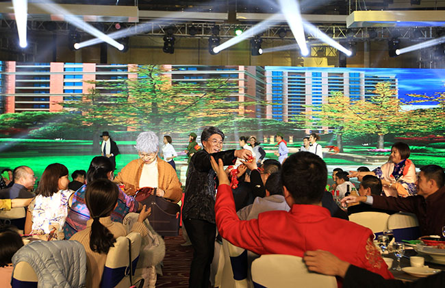 本次晚會(huì )采用中國傳統文化的主題,參會(huì )人員著(zhù)中國風(fēng)禮服入場(chǎng),現場(chǎng)布置也透著(zhù)濃厚的中國風(fēng)味,迎賓大道的黃色地毯、道路兩旁的燈籠、鏤空的大紅門(mén)、綠瓦白墻的合影區……隨處可見(jiàn)的中國傳統文化元素讓參會(huì )人員欣喜不已,紛紛駐足拍照留念。