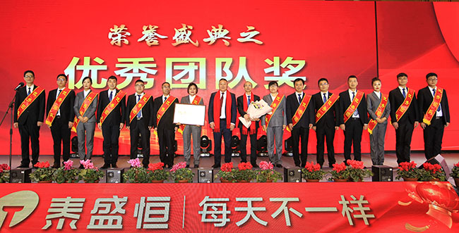 會(huì )上,對2017年取得突出成績(jì)的優(yōu)秀團隊及個(gè)人,以及在公司工作五年以上的老員工進(jìn)行了隆重表彰,公司高層領(lǐng)導分別上臺宣布了獲獎名單并為其頒獎。其中,泰盛廣場(chǎng)項目獲得優(yōu)秀項目獎、營(yíng)銷(xiāo)管理中心和招采管理中心獲得優(yōu)秀團隊獎,孫董為獲獎團隊頒獎了榮譽(yù)獎牌。成績(jì)只代表過(guò)去,希望獲獎的團隊及個(gè)人在新的一年里戒驕戒躁、再接再厲,充分發(fā)揮模范帶頭作用,為公司發(fā)展再立新功。