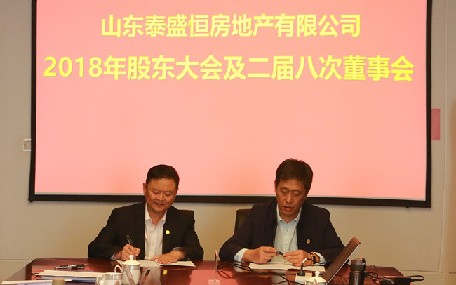2018年3月30日上午9時(shí),泰盛恒地產(chǎn)2018年股東大會(huì )及二屆八次董事會(huì )在二號會(huì )議室順利召開(kāi)。會(huì )議由公司董事長(cháng)馬亞鵬主持,陜西金泰恒業(yè)股東代表馬亞鵬、華鵬集團股東代表孫鵬、公司董事趙利捷、孫磊出席了本次大會(huì ),監事會(huì )主席王雅萍、監事徐愛(ài)斌及公司經(jīng)營(yíng)班子成員列席會(huì )議。