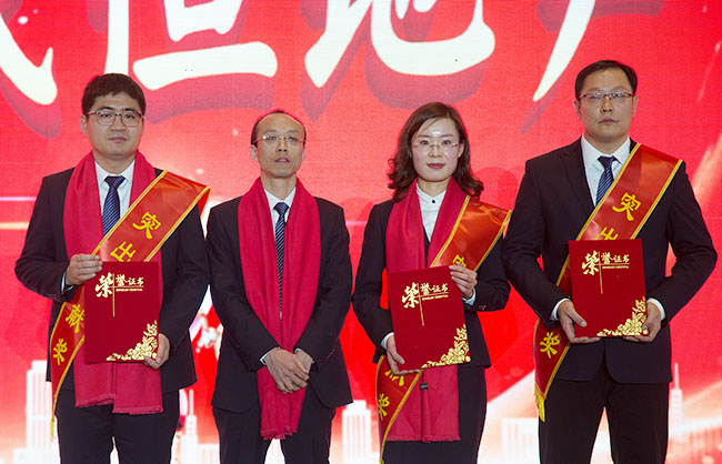 為鼓勵先進(jìn)、激發(fā)活力,會(huì )上對2018年取得突出成績(jì)的優(yōu)秀團隊和個(gè)人進(jìn)行了隆重表彰,公司中高層分別為各獎項頒發(fā)了榮譽(yù)證書(shū)及獎牌。其中,孫董為獲得泰盛恒速度獎的泰盛廣場(chǎng)項目頒發(fā)了榮譽(yù)獎牌,鼓勵大家在新的一年里繼續奮勇?tīng)幭?,積極釋放正能量,不斷開(kāi)拓創(chuàng )新。