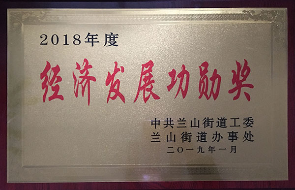 同月,再次榮獲由蘭山街道工委及蘭山街道辦事處頒發(fā)的2018年度“經(jīng)濟發(fā)展功勛獎”。