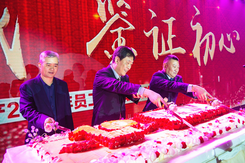 馬董、孫董、俞總共同切下象征美好未來(lái)的美味蛋糕