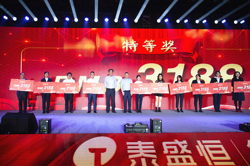 本場(chǎng)晚會(huì )共分為四個(gè)篇章,依次呈現了泰盛恒地產(chǎn)對初心的堅守、對奮斗的泰盛恒人的感恩、對美好未來(lái)的向往和對偉大夢(mèng)想的執著(zhù)堅守。動(dòng)聽(tīng)的歌曲、曼妙的舞蹈、爆笑的小品、才華橫溢的三句半……晚會(huì )節目精彩紛呈,可謂是一場(chǎng)視覺(jué)與聽(tīng)覺(jué)的饕餮盛宴。特別是穿插其間的“幸運大抽獎”活動(dòng),更是點(diǎn)燃了晚會(huì )現場(chǎng)的全部熱情。
